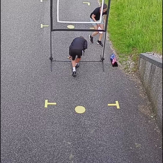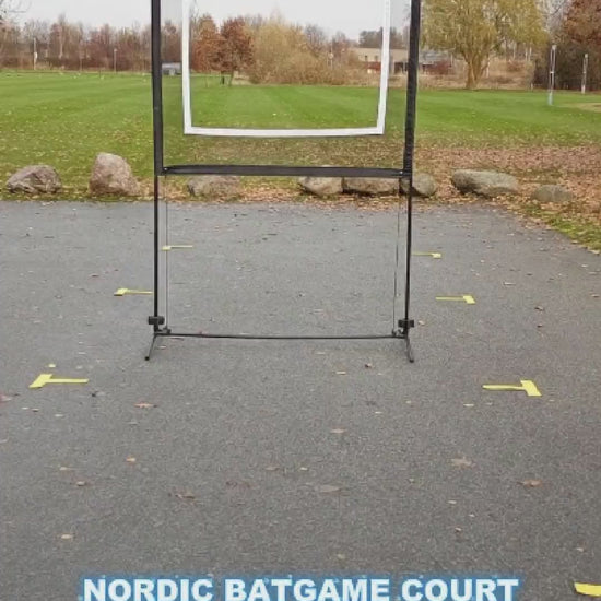 Sæt spillenettet op på vejen, basketbanen, hallen, terrassen, parkeringspladsen eller måske padelbanen, hvor du har lyst. Når du har lyst! 1 spiller på hver side af nettet, spil en bold gennem nettet og spil med dit eget padel bat - det er simpelt. Sæt banemarkør på banen og spil evt. med stage 2 tennisbolde for nemmere spil.